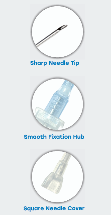 Sharp beveled needle ensures smooth and painless venipuncture.