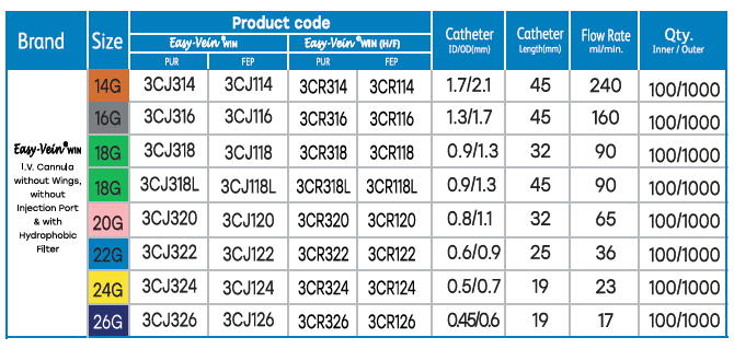 Wingless and portless design allows easy insertion and is ideal for short-term IV therapy.