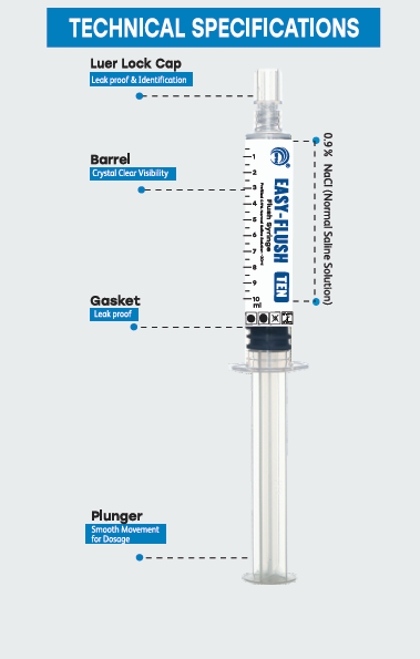 FLUSH SYRINGE is a range of ready-to-use sterile flush syringes containing 0.9% sodium chloride (NaCl) specifically designed to enhance best clinical practice.