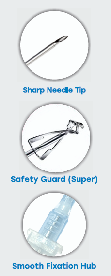 Nickel-plated beveled needle tip ensures smooth insertion and controlled delivery.